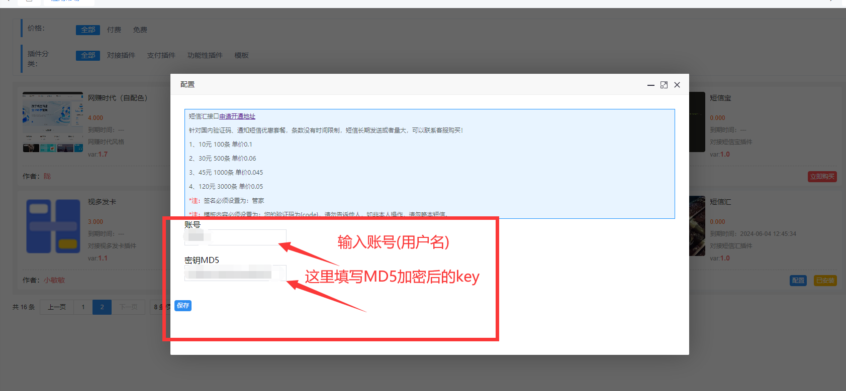 数卡网权益系统对接短信汇方法 温馨提示:本文最后更新于2024年5月4日 21:20,若内容或图片失效,请在下方留言或联系博主。 首先登陆到数卡网后台,找到服务中心->应用市场->短信汇,点击配置 一次配置短信汇平台的用户名和MD5密钥即可使用 标签:短信插件短信汇插件数卡网短信插件插件